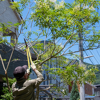鮮やかな緑、色鮮やかな花、柔らかい芝、この豊かなお庭や家を維持するために私達は日々草木を学び、伐採技術を上げ、サービスを整え、お客様や地域の方々が気持ちの良い暮らしができるようお手伝いさせていただきます。