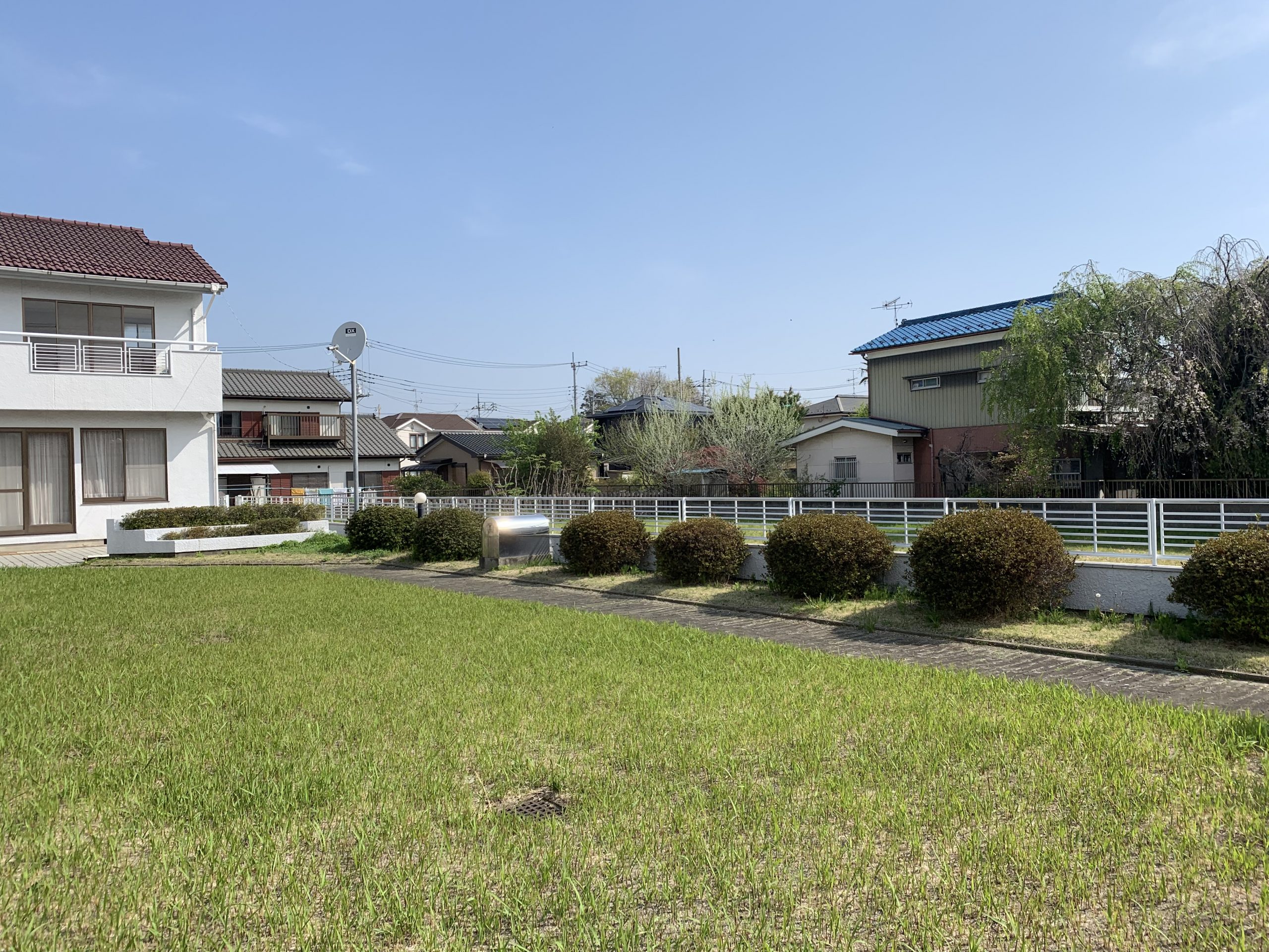 お庭に生い茂った雑草を刈り、整地、敷砂利いたしました。