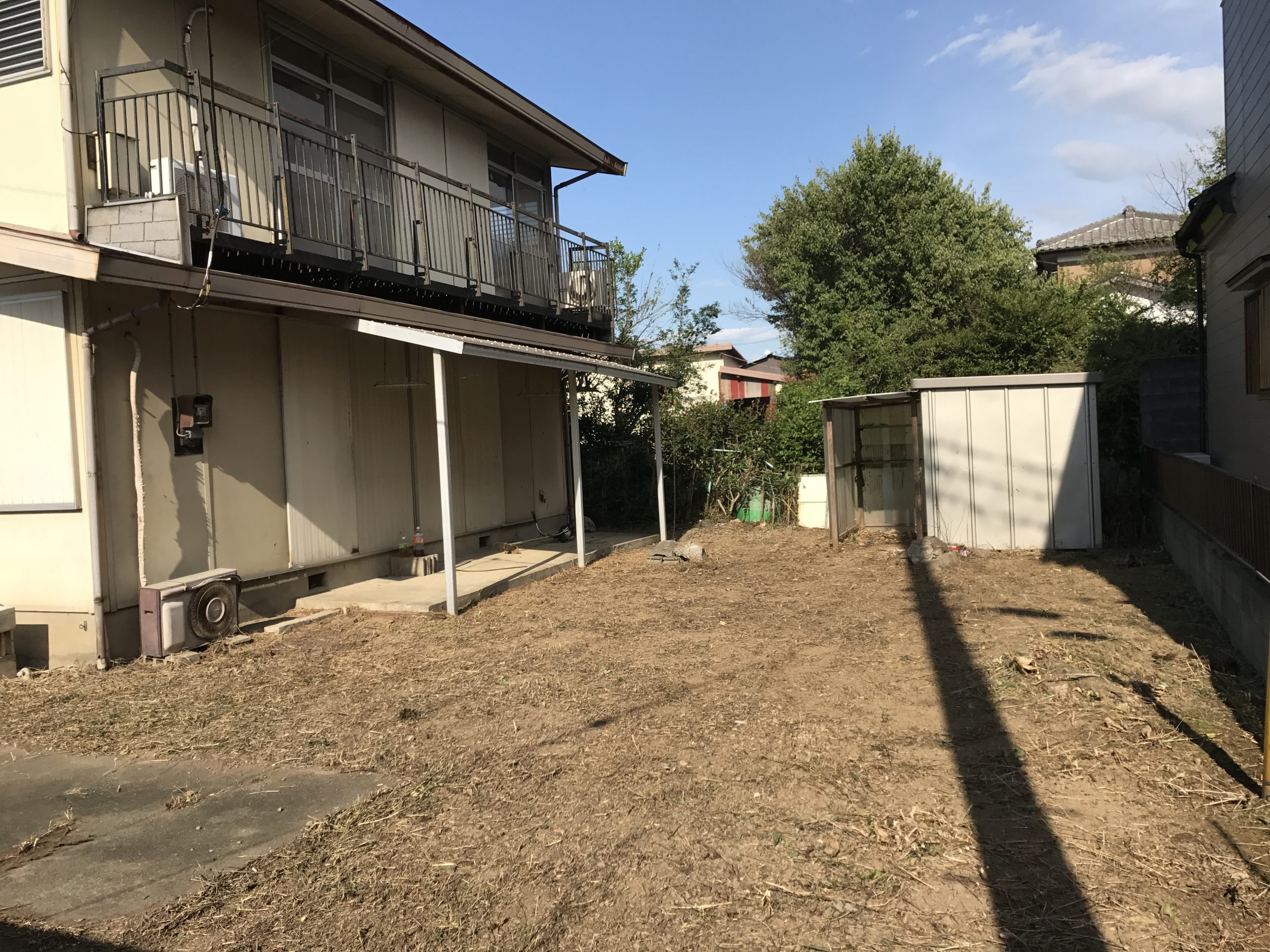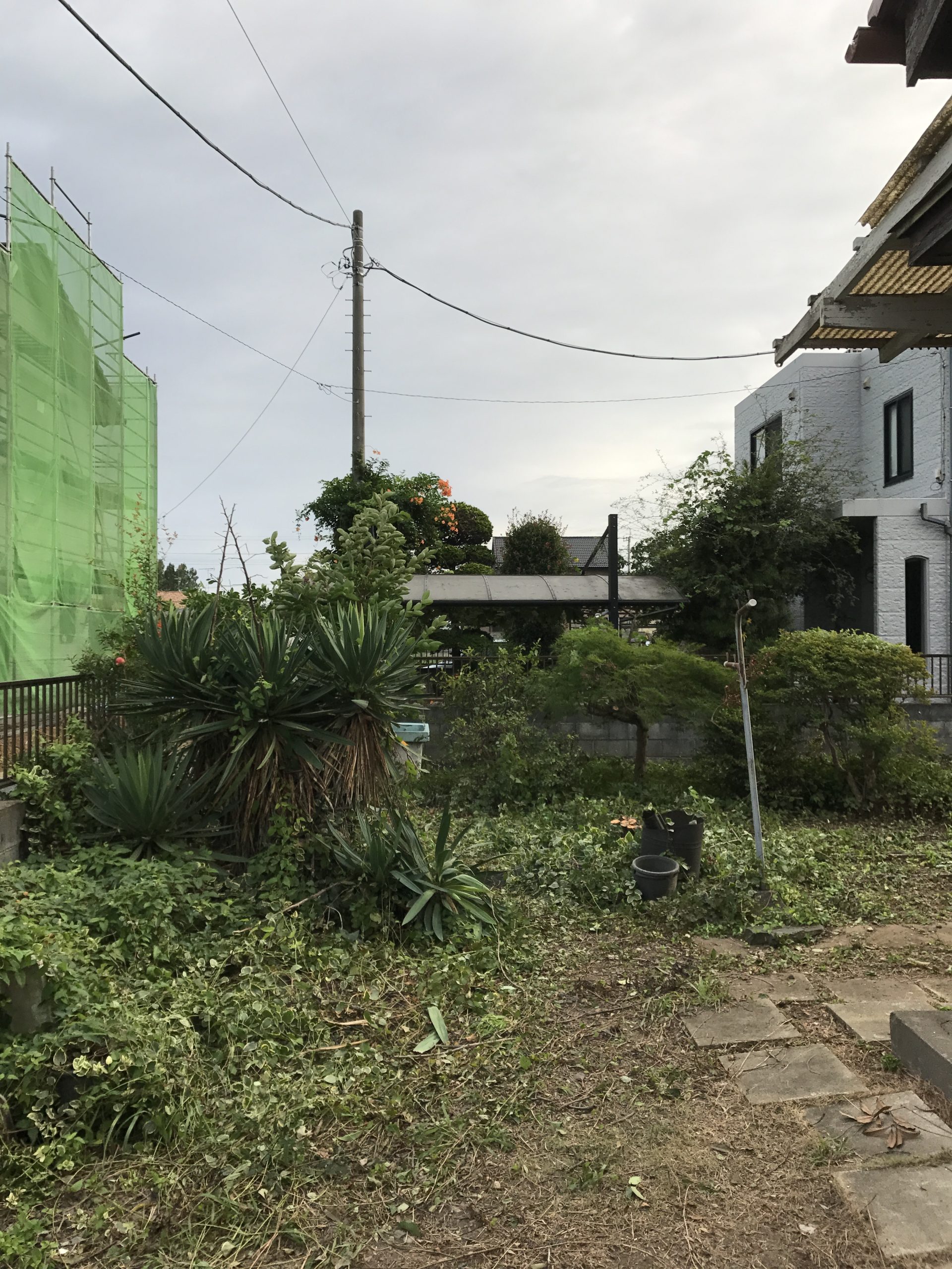 お庭に生い茂った雑草を刈り、整地、敷砂利いたしました。