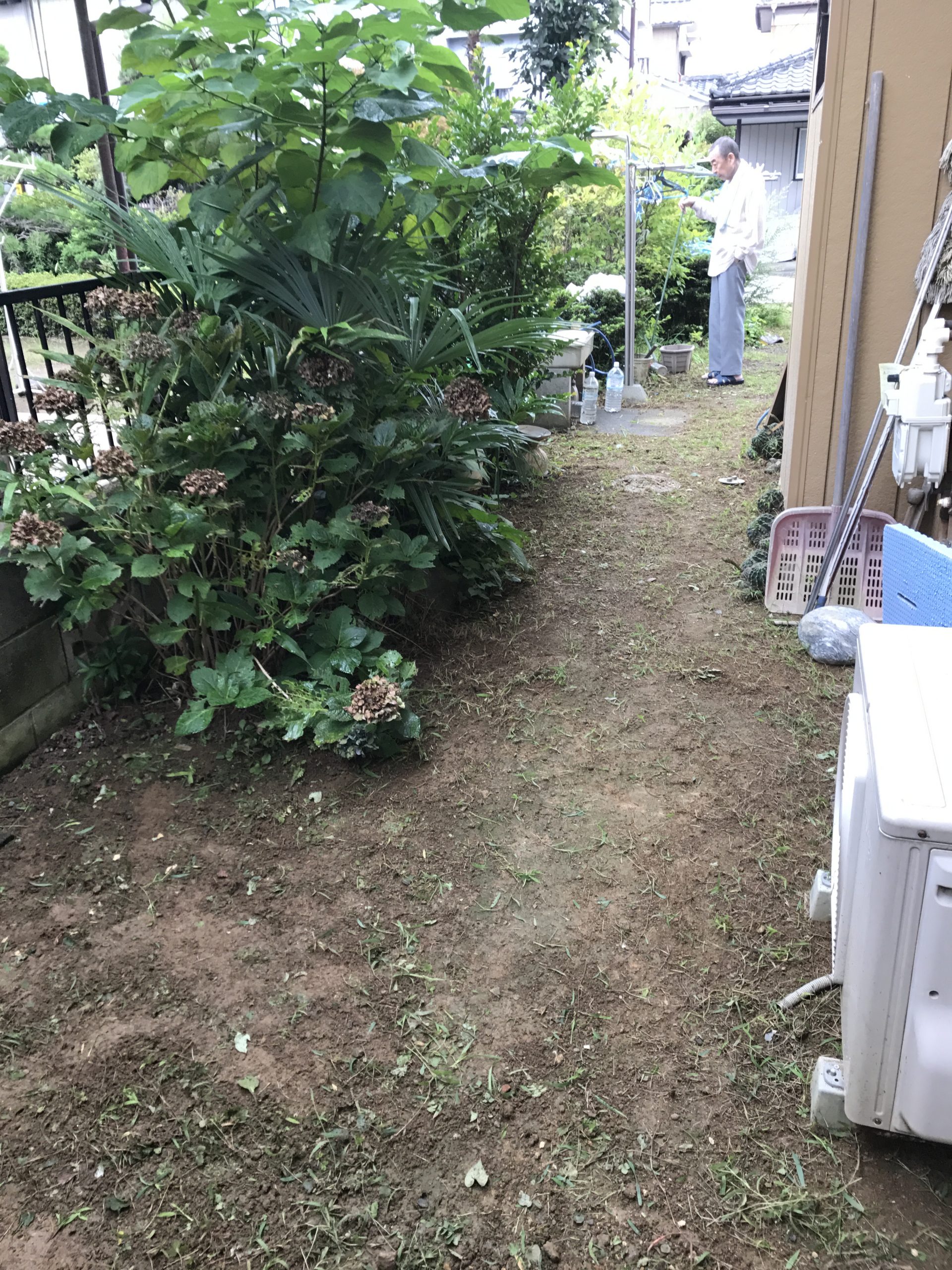 お庭の壁の際に植えていた植木を伐根いたしました。