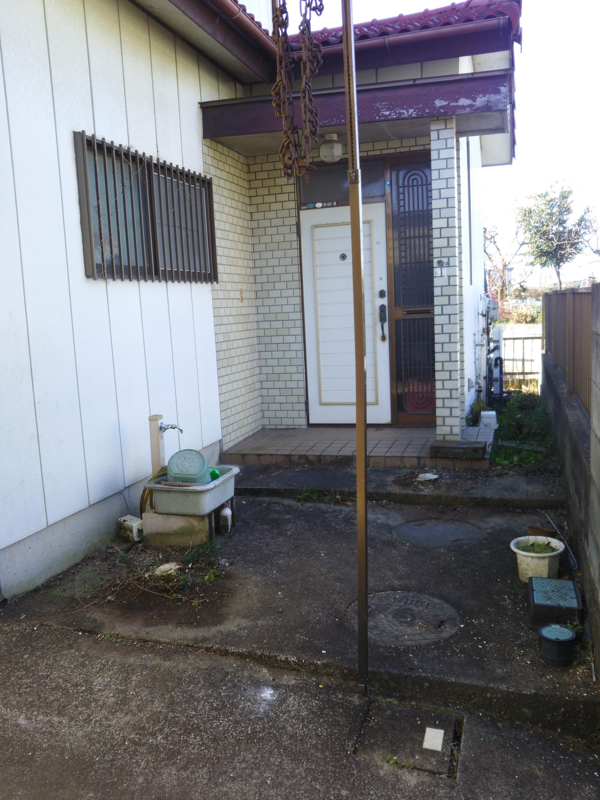 お庭に生い茂った雑草を刈り、整地、敷砂利いたしました。