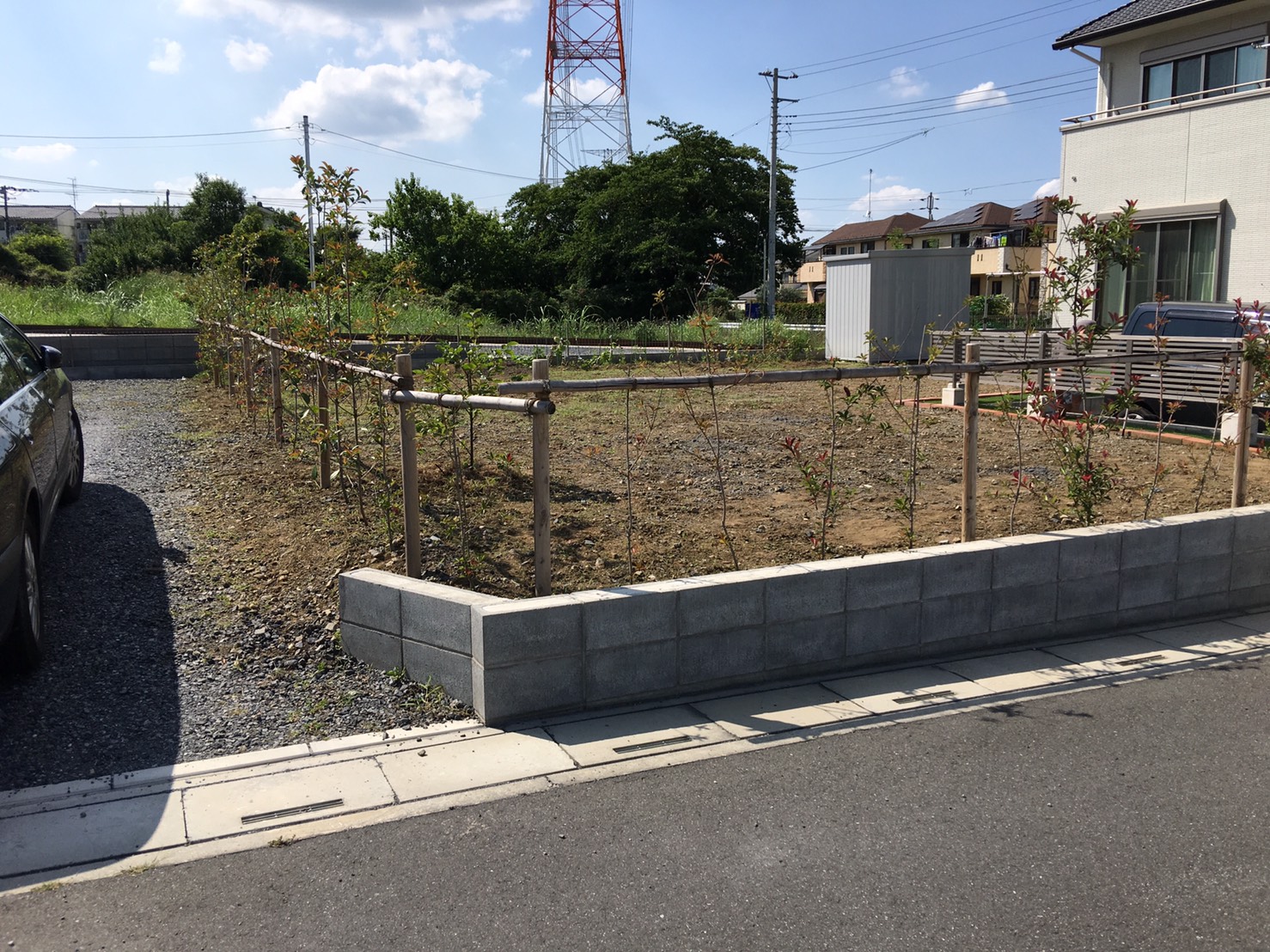 花壇と砂利敷きの施工を行いました。