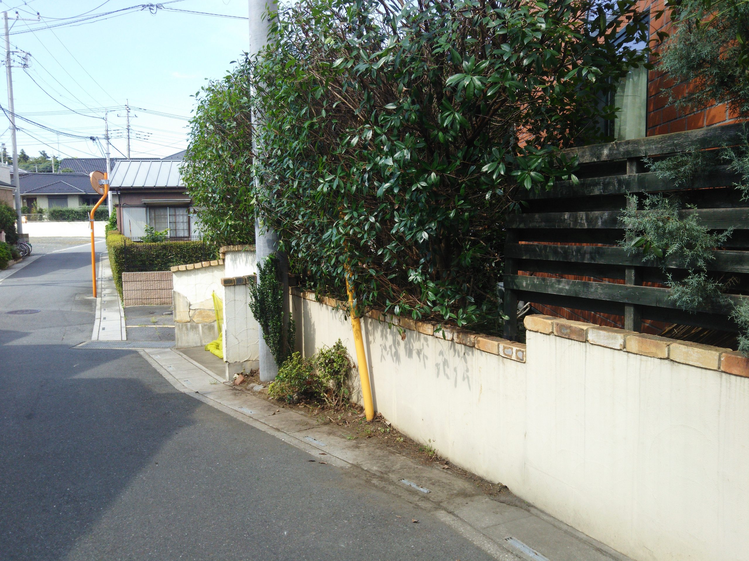 お庭の壁の際に植えていた植木を伐根いたしました。