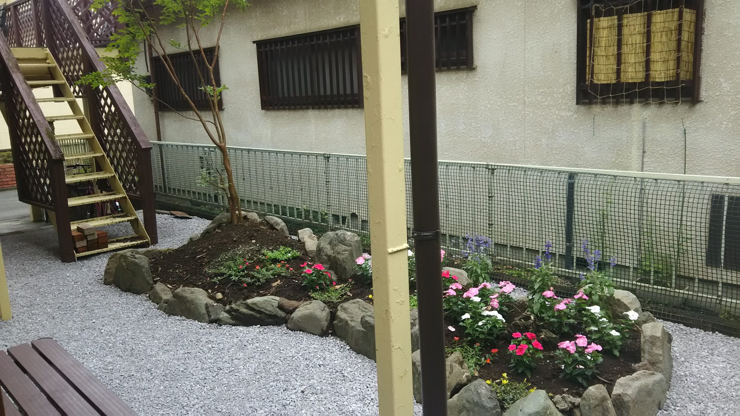 花壇と砂利敷きの施工を行いました。