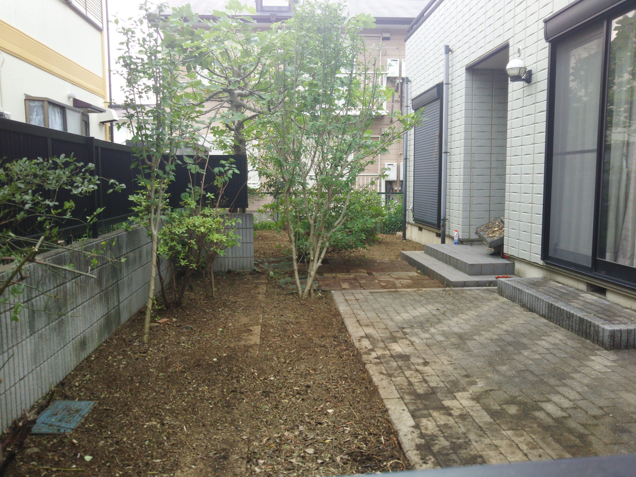お庭の壁の際に植えていた植木を伐根いたしました。