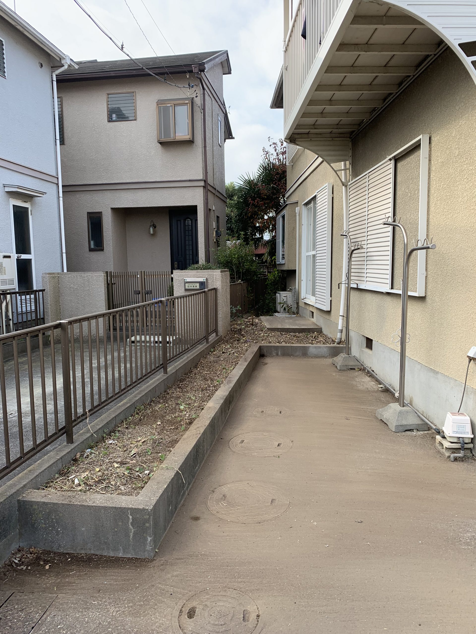 お庭の壁の際に植えていた植木を伐根いたしました。
