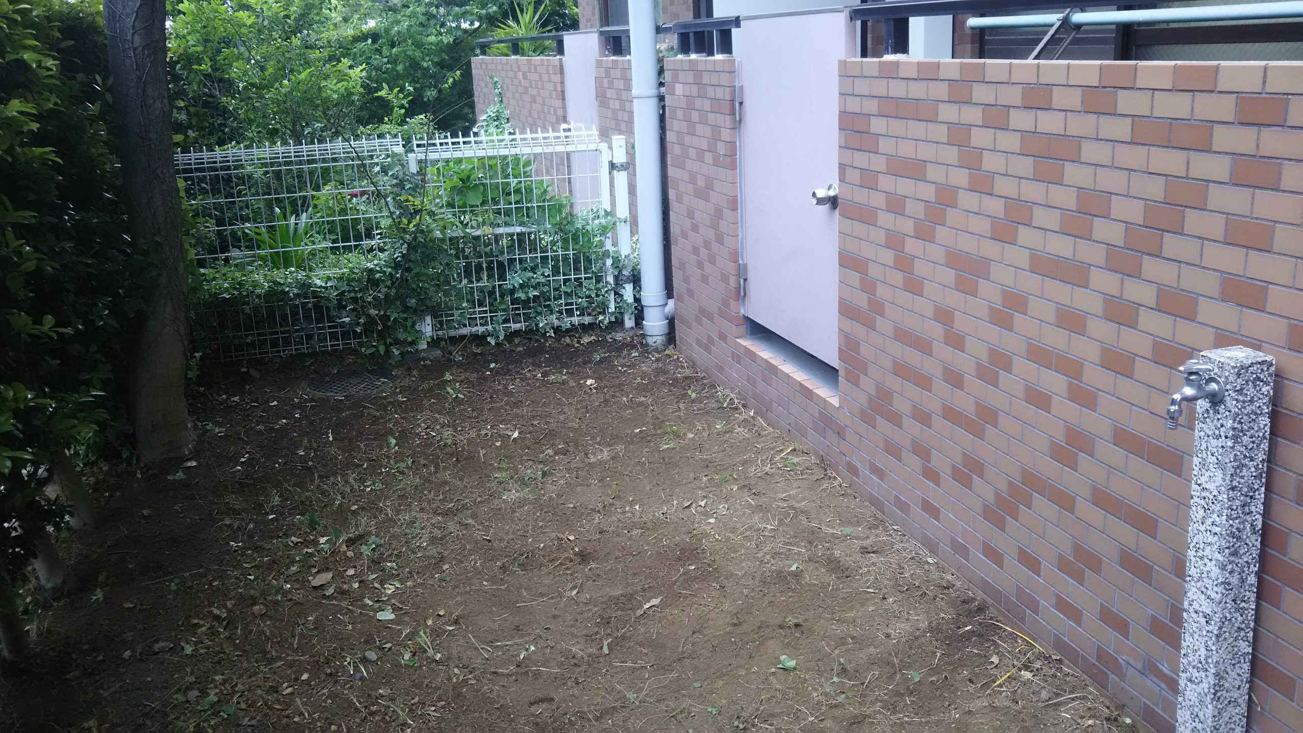 お庭の壁の際に植えていた植木を伐根いたしました。