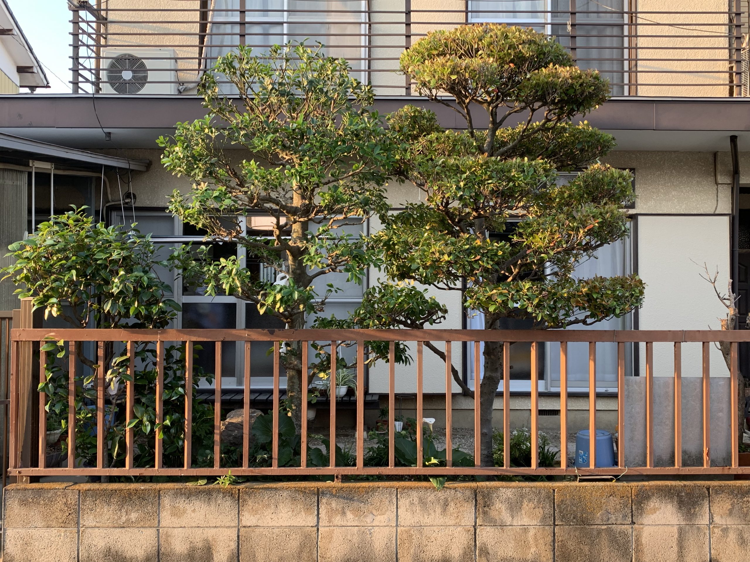 キンモクセイ、モッコク、モチの剪定作業を行いました。毎年剪定させてもらってるお客様です🙂