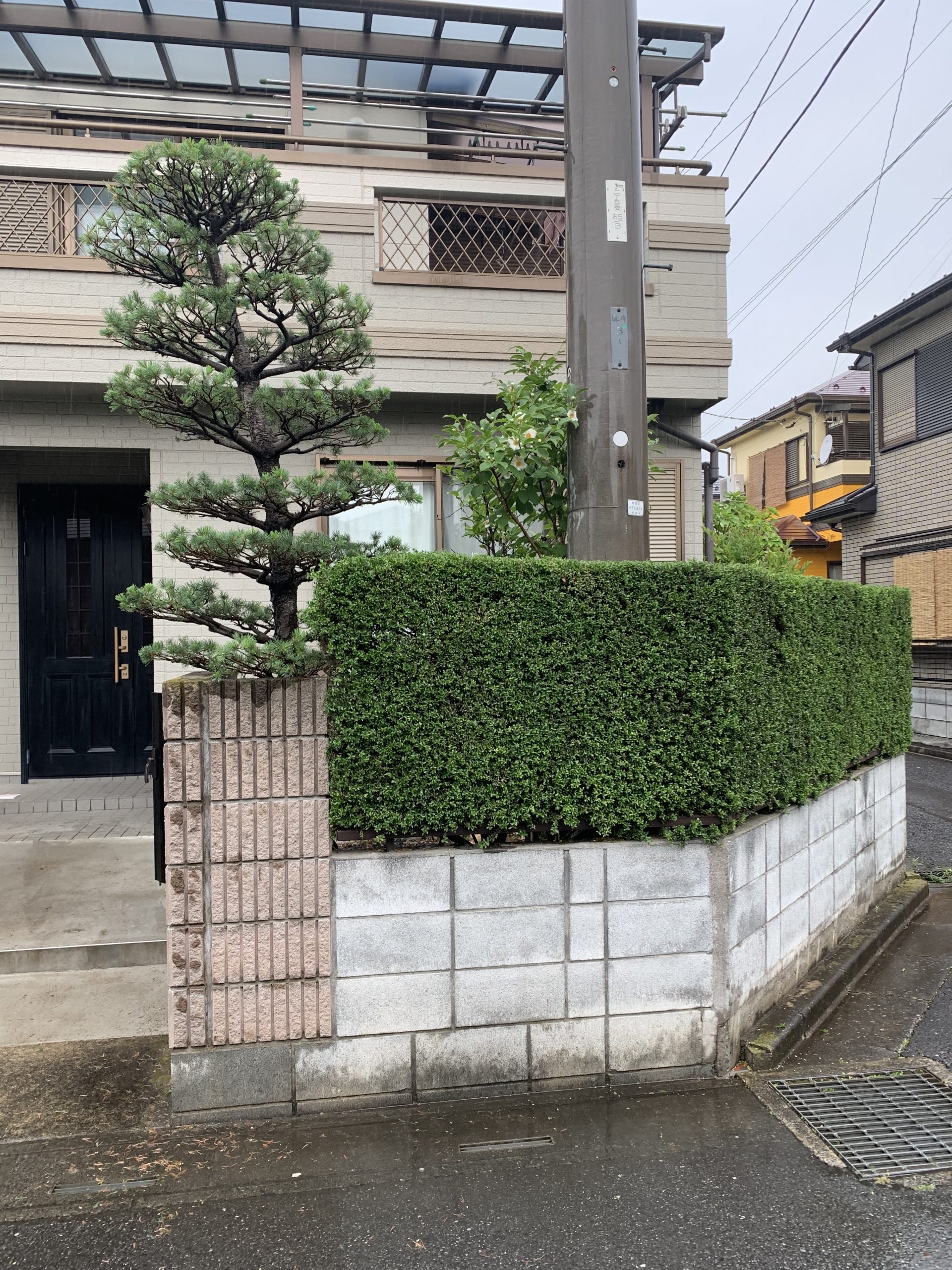 お庭の壁の際に植えていた植木を伐根いたしました。